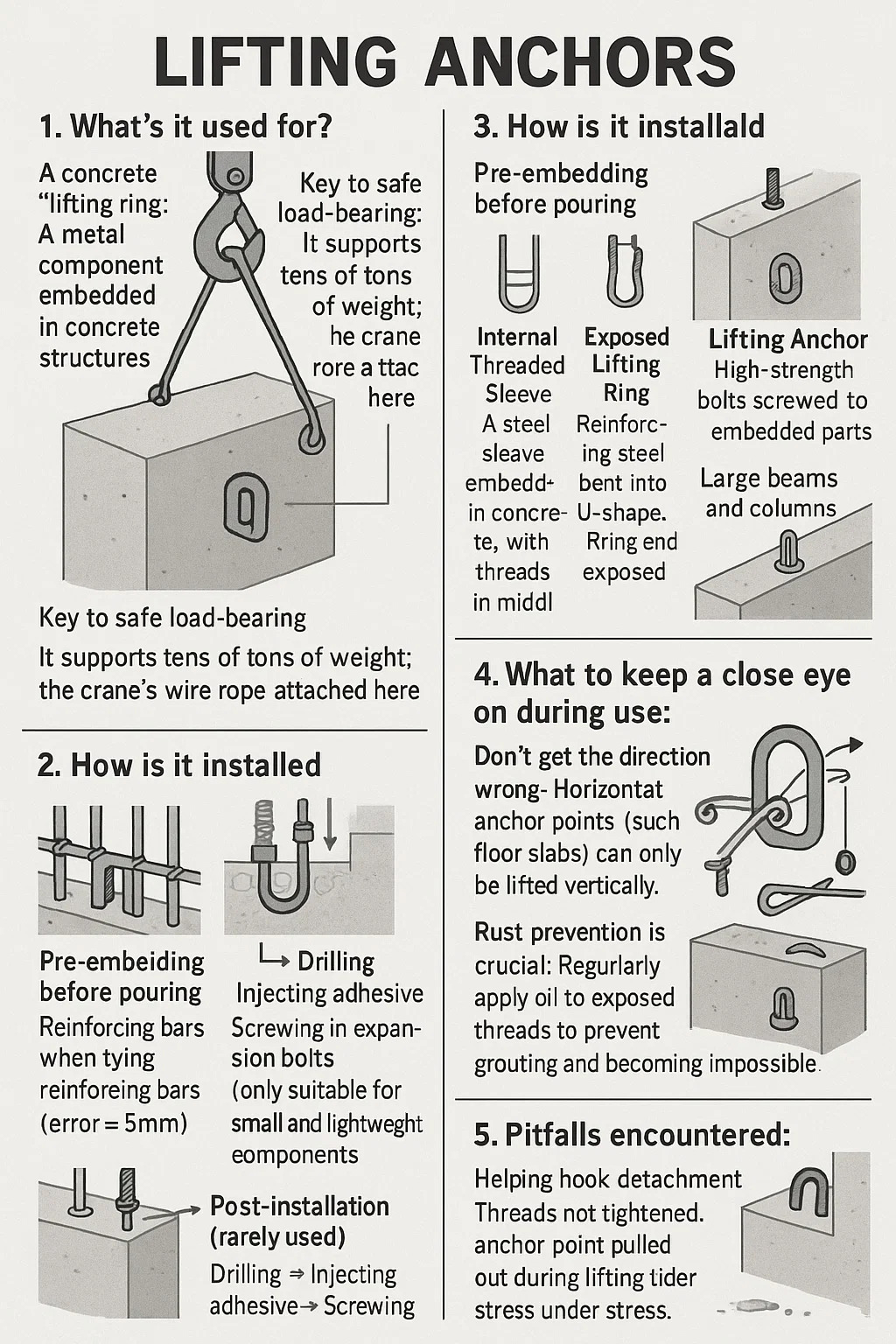 Nhúng trước khi đổ: ① Cố định vị trí điểm neo khi buộc thanh cốt thép (sai số ≤ 5mm) ② Hàn ống bọc/vòng chữ U vào thanh cốt thép chính để tránh dịch chuyển ③ Tránh điểm neo khi bê tông bị rung để tránh phun vữa