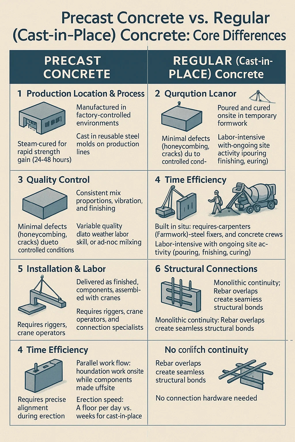 Bê tông đúc sẵn so với bê tông thông thường (đúc tại chỗ): Sự khác biệt cốt lõi